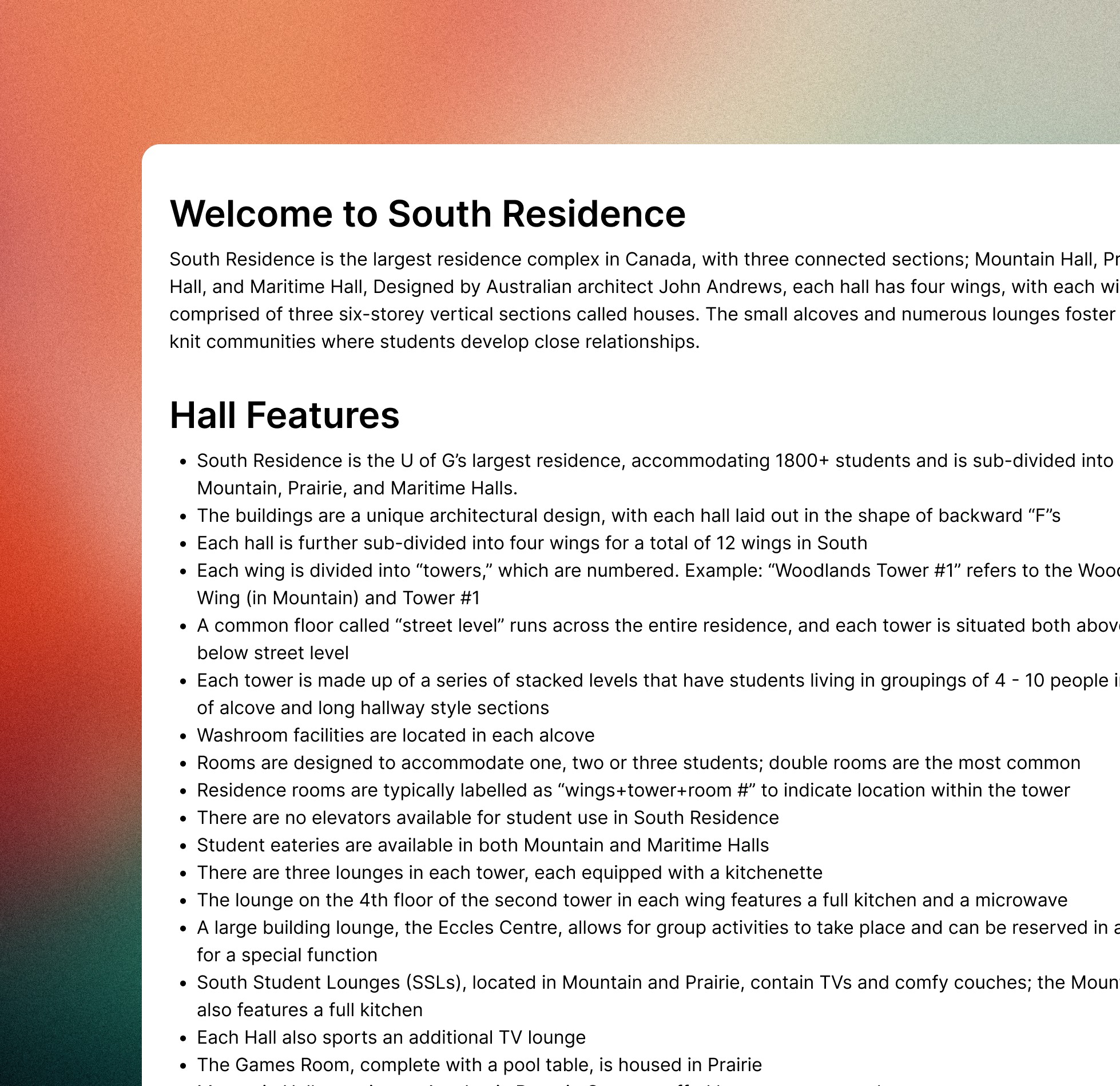 Every year, 15,000+ students and parents rely on the University of Guelph Housing site to choose where to live but key info on residence options and features is buried under 150+ outdated pages.